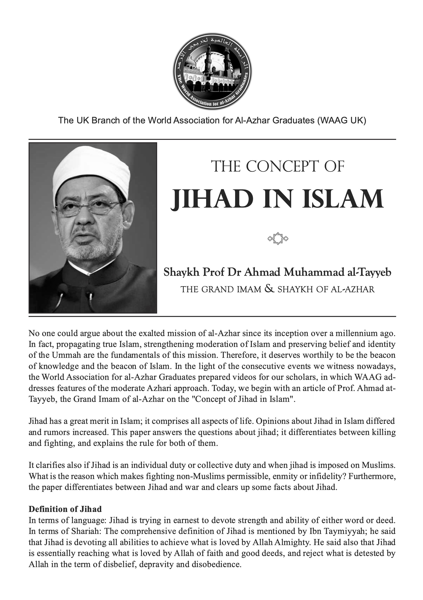The Concept of Jihad in Islam by Grand Imam Dr Ahmad al-Tayyeb Shaykh al-Azhar