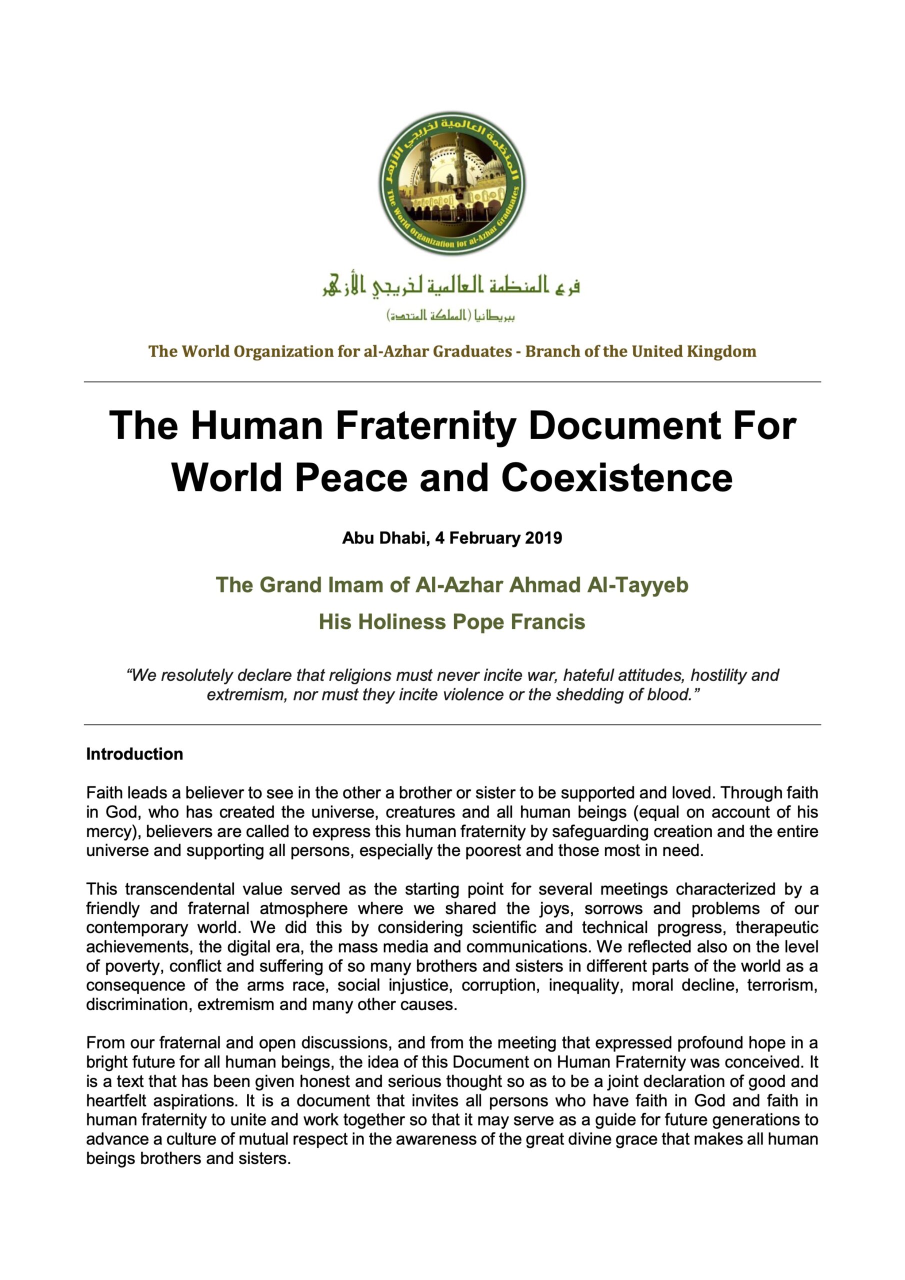 The Human Fraternity Document